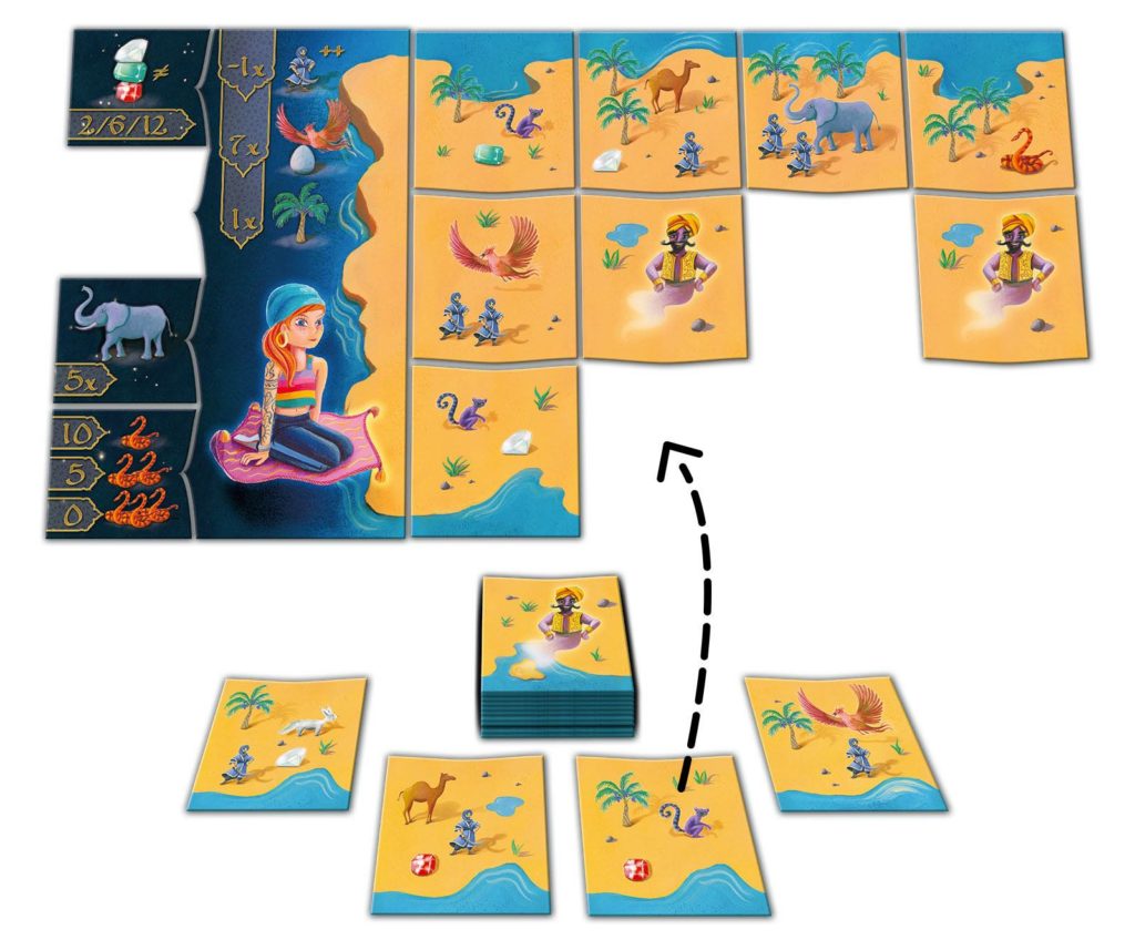 Ici, avec une lampe magique, tout va bien.. deux lampes magiques, tout va bien.. mais à la troisième lampe (les fameux trois voeux), hop, on retourne les deux premières lampes face génie (ce qui fait perdre des points), mais on conserve la troisième visible. Moins méchant on vous dit !!