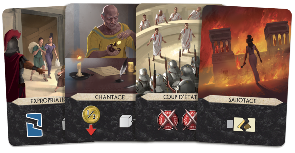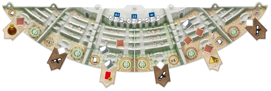 Et mieux encore, le Sénat en lui-même permet d’accéder à un nouvelle façon de gagner: si un joueur est majoritaire dans chacune des 6 chambres, il remporte immédiatement une victoire Politique !