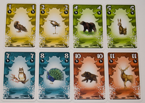 Charles me montre alors un petit prototype sur lequel il travaille. Un prototype avec des cartes séparées verticalement en deux parties. La partie de gauche contient des ressources. La partie de droite contient des paysages. L’idée, c’est que chaque carte que l’on récupère doit être glissée sous les cartes précédemment acquises, soit du côté gauche (en ne laissant alors visible que la partie « ressources ») soit côté droit (en ne laissant alors que la partie paysage visible).