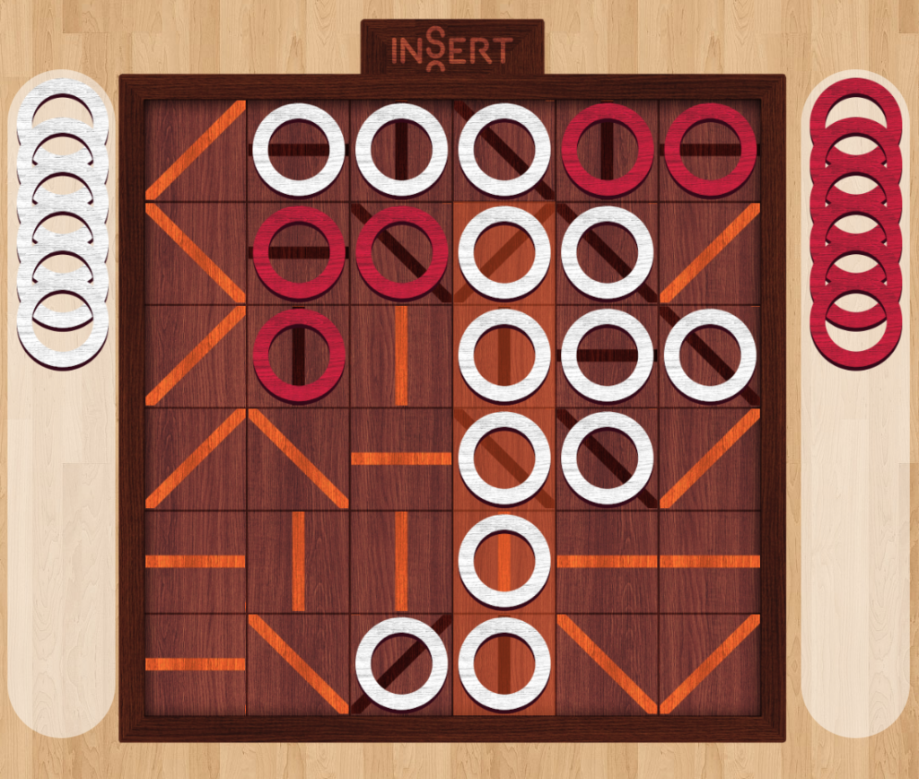 J’ai continué à projeter ça mentalement sur mon système de jeu et… oui il était assez clair que ce système d’insertion pouvait se révéler parfaitement complémentaire de mon idée de plateau initial. Pas de prise ici, mais du retournement de pions. Exactement à l’envers d’un OTHELLO. Une sorte d’OLLETHO, au final 😉
