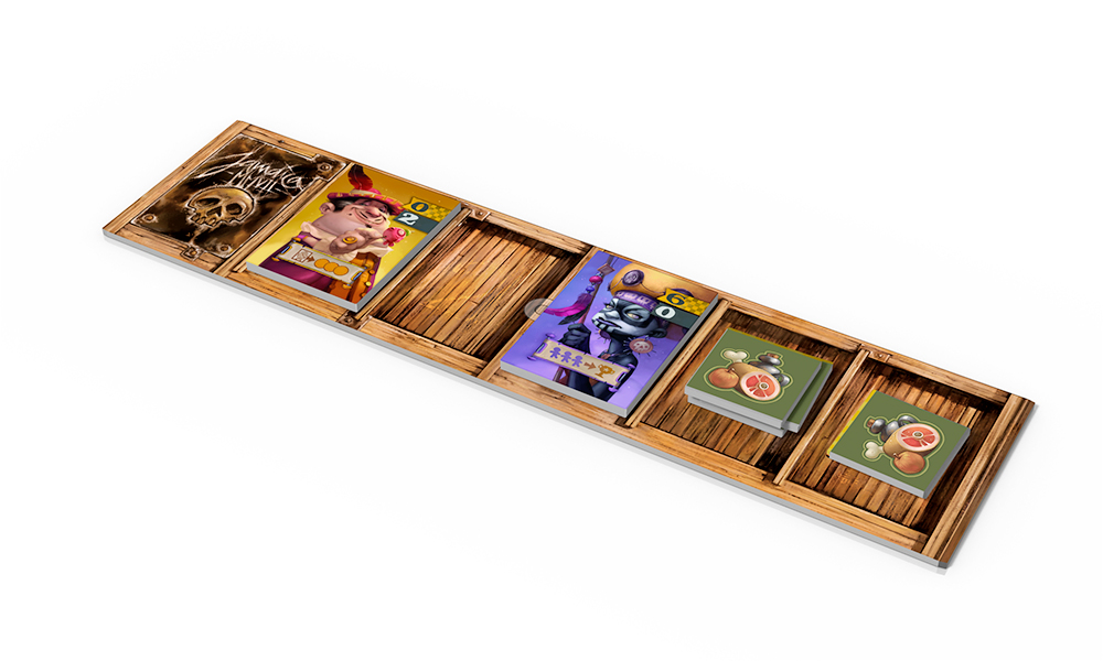 L’idée principale a été d’ajouter.. une taverne (matérialisée par la boite elle-même, qui sert de support de jeu). Et dans cette taverne on peut recruter des pirates: