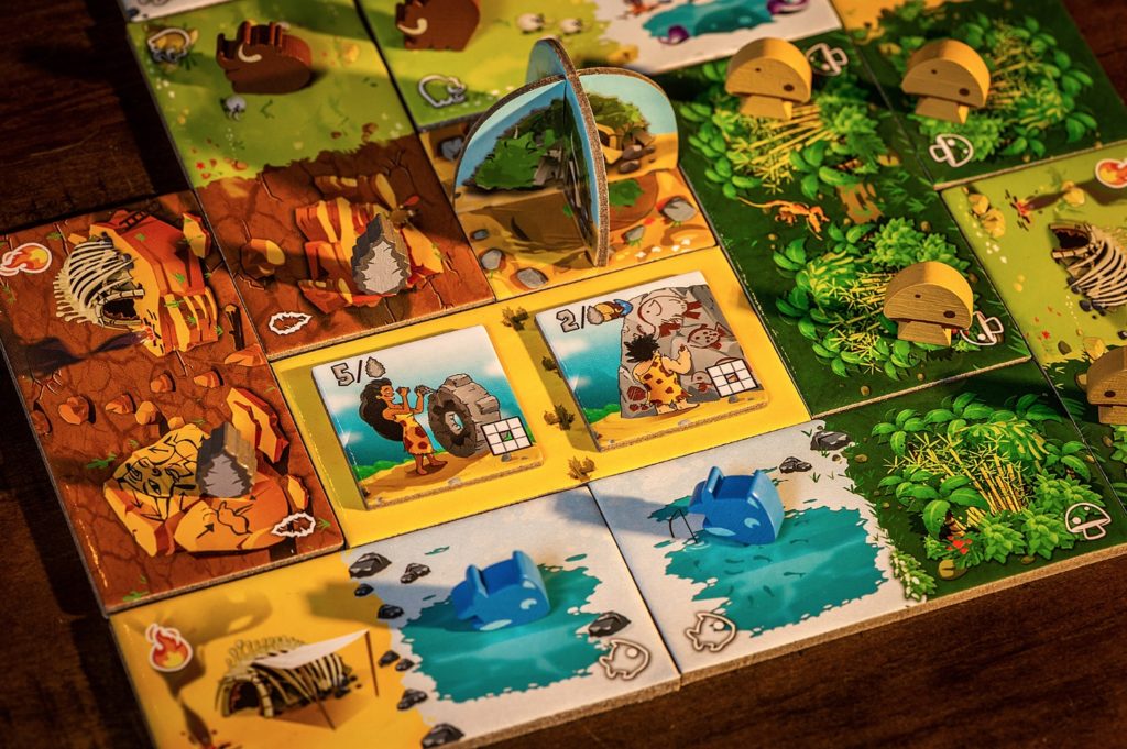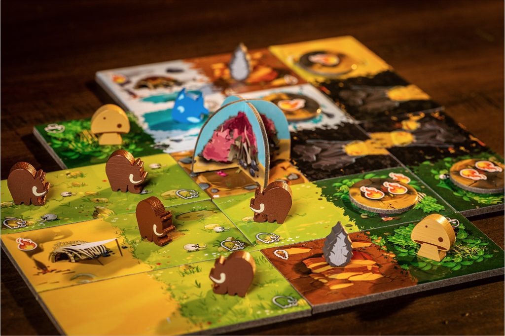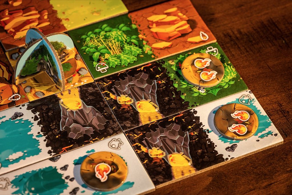 Vous jouez avec des partenaires connaissant déjà Kingdomino ? Les couronnes sont remplacées par du feu (ben oui.. préhistoire = guerre du feu) et ensuite vous n’avez que les volcans à expliquer.
