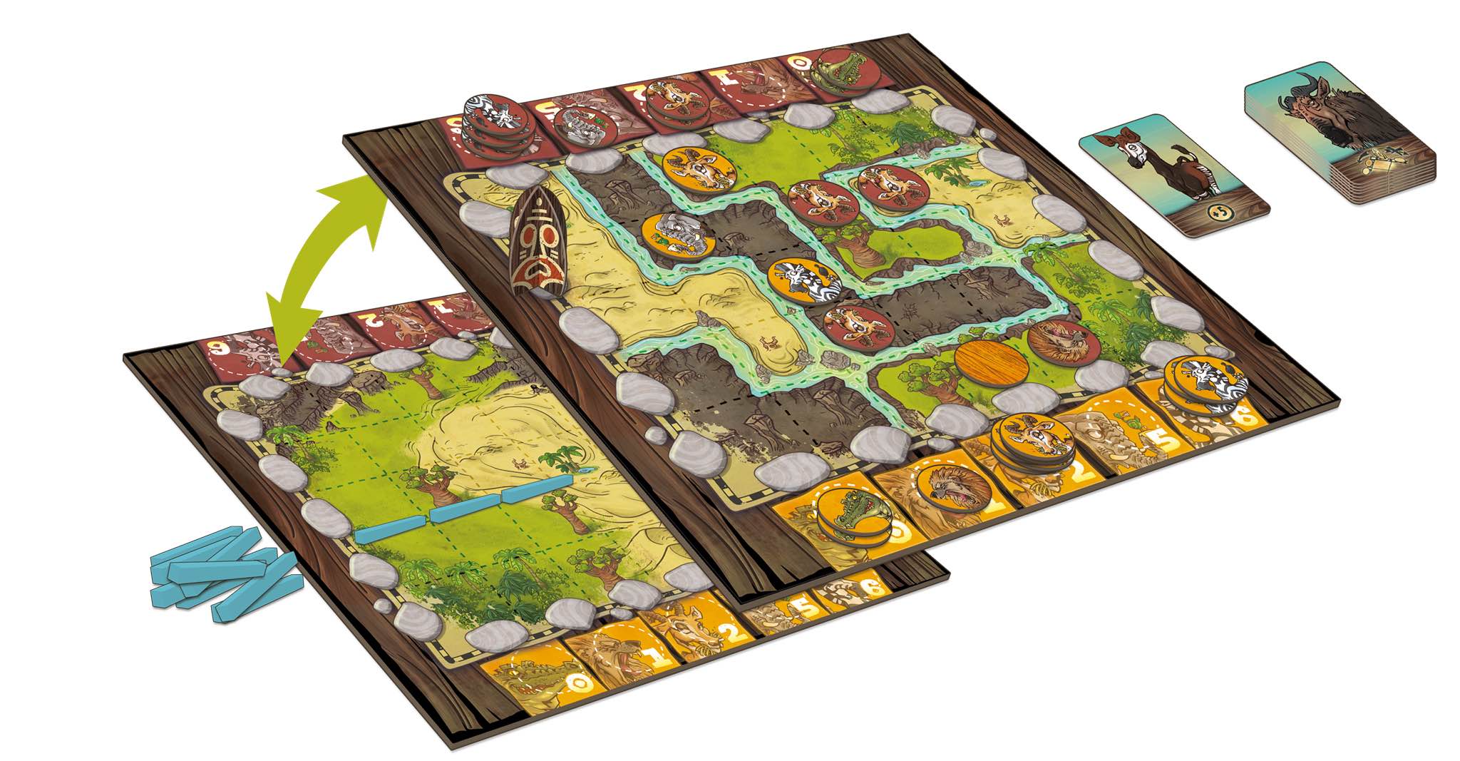 Grâce à ce matériel, il est possible, à chaque partie de composer un plateau de jeu différent, en utilisant les bâtonnets pour matérialiser les rivières délimitant les 6 zones à conquérir. La rejouablilité est infinie !
