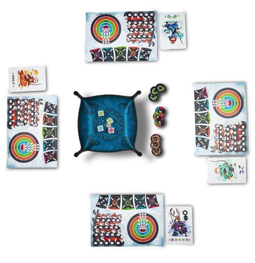 Un nouveau venu qui fait le pari d’offrir un écrin assez fou à notre jeu, avec une piste de dés à l’intérieur de la boite, des jetons en plexiglas comme on en a jamais vus., des protège cartes pour les 4 cartes personnage. Le tout fabriqué pour l’essentiel dans ses ateliers, en France.