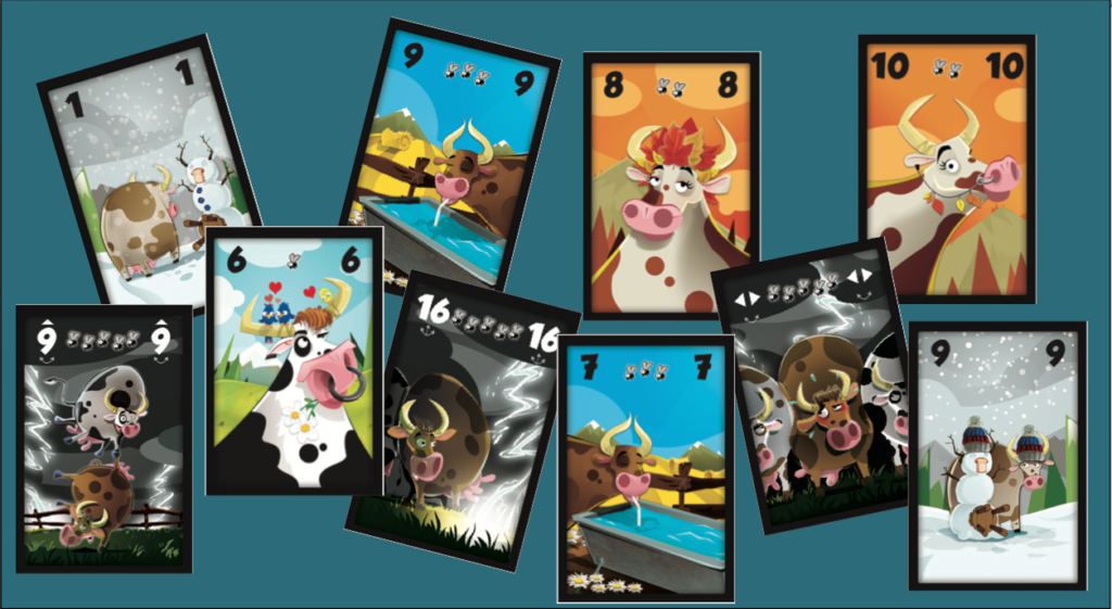 Un petit jeu de cartes, simple et rigolo, dans lequel les joueurs essaient d’éviter d’accueillir dans leur étable trop de vaches pleines de mouches.
