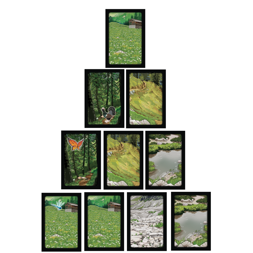 Et il va devoir ensuite placer sa ou ses cartes pour composer sa zone protégée, en forme de montagne…