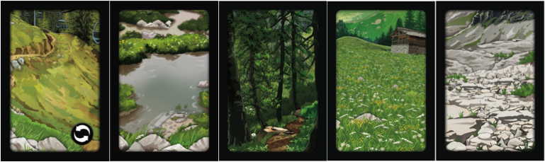 Hop.. les 55 cartes du jeu représenteront donc ces paysages, avec une fréquence relative calquée sur la fréquence réelle des paysages du secteur.