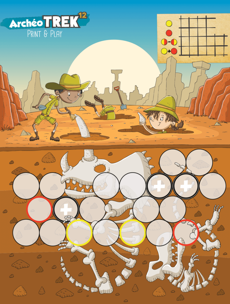 Plus de chaines, plus de modes de scoring compliqués, mais un système§me permettant de piocher des jetons ossement dans un sac car… nos jeunes explorateurs sont maintenant à la recherche de fossiles !