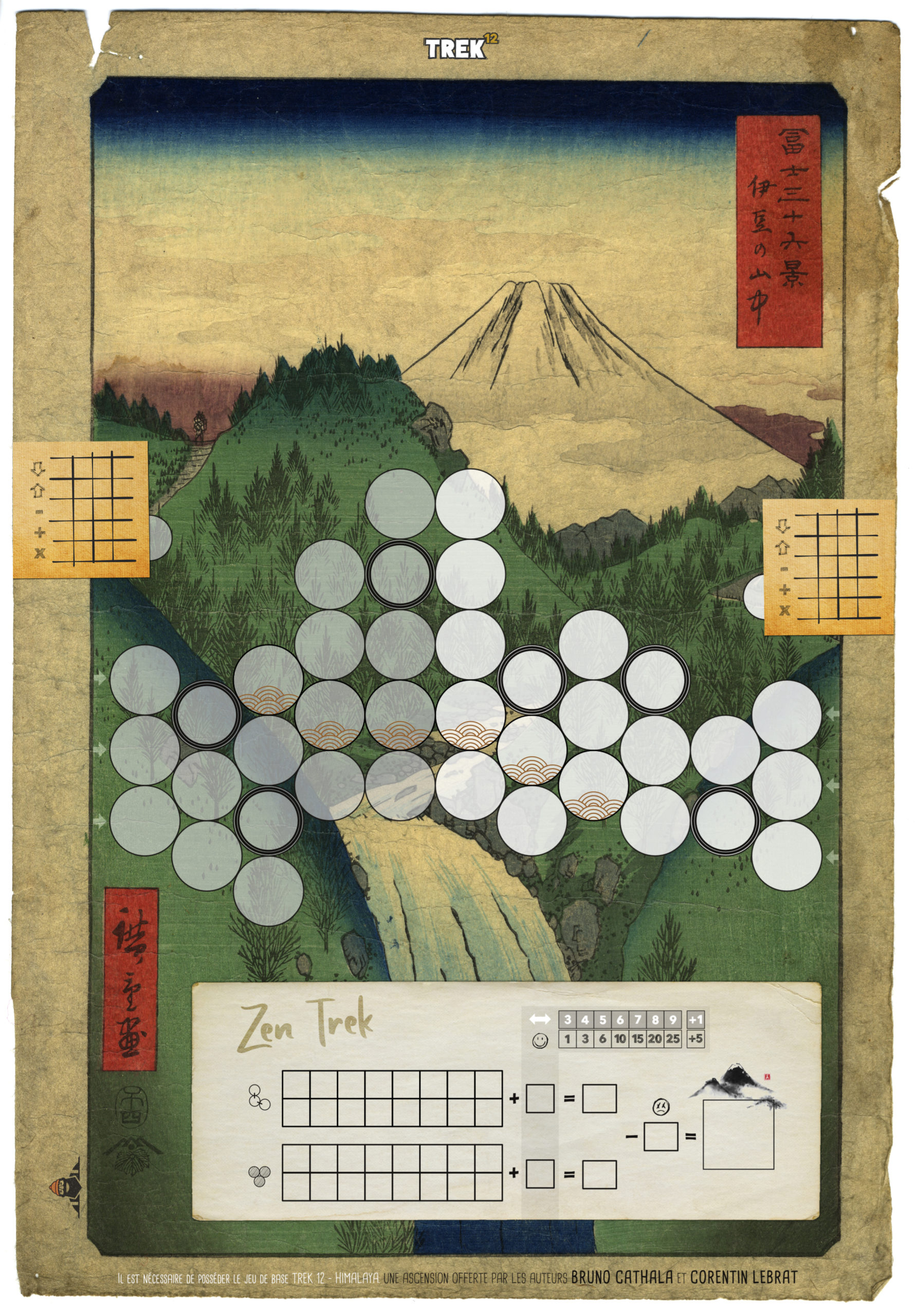 - Chaque montagne possède son propre tableau pour le choix du résultat des dés. On doit forcément remplir les cases d’une montagne avec le tableau spécifique à cette montagne (il est par exemple interdit de remplir une case de la montagne blanche en utilisant le tableau de la montagne grise). Vous pouvez très bien être passé d’un côté à l’autre sans avoir rempli entièrement l’un des deux mais il faut bien respecter le tableau des choix correspondants.