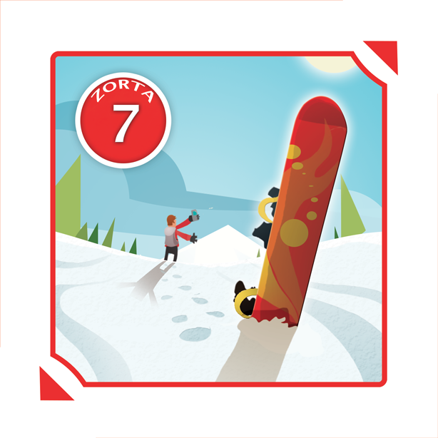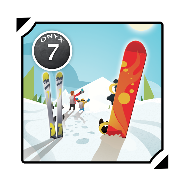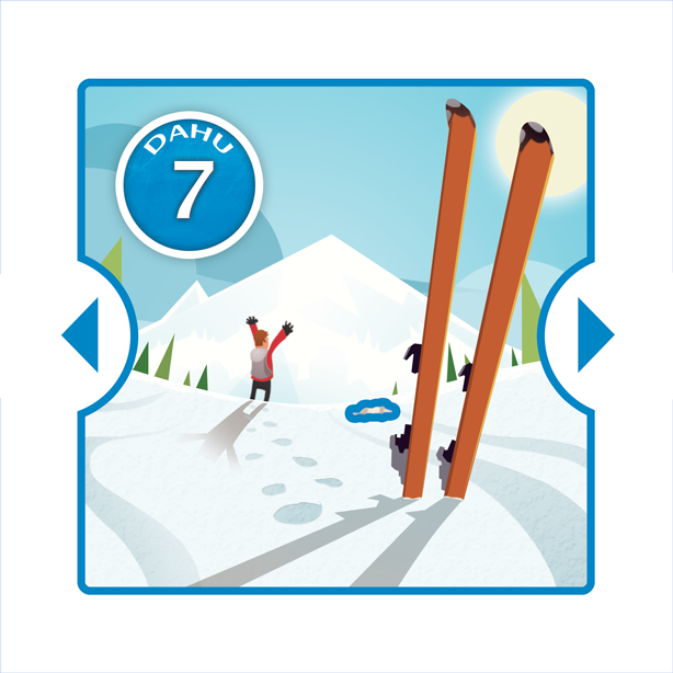 T’SCHUSS propose d’explorer le massif skiable, sous forme d’un petit système malin et original de collecte de cartes. Il s’agit d’un jeu à contraintes successives (mon choix va conditionner le choix du joueur suivant, qui va conditionner le choix du joueur suivant, etc…).